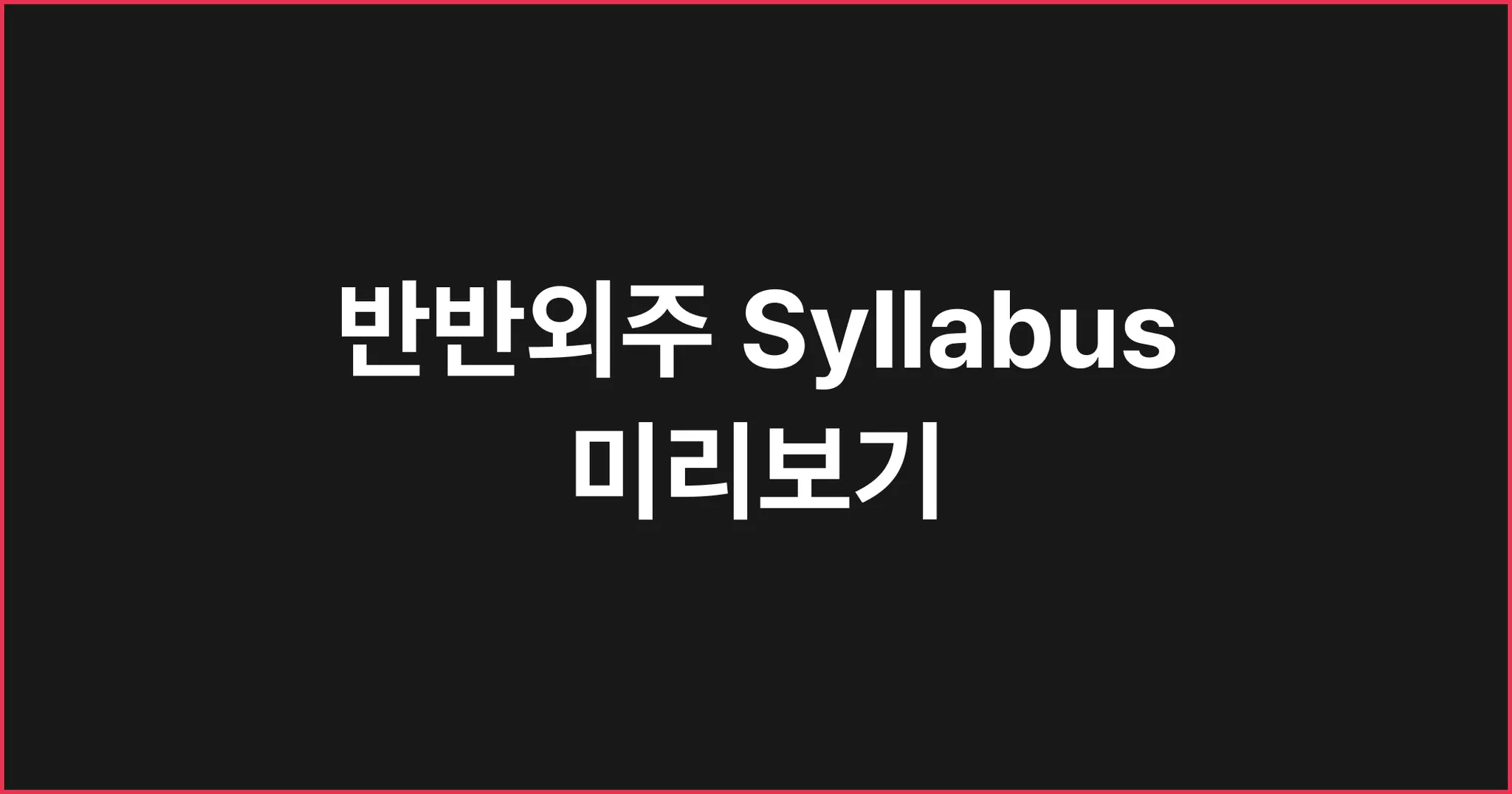 반반외주 - 탄생배경