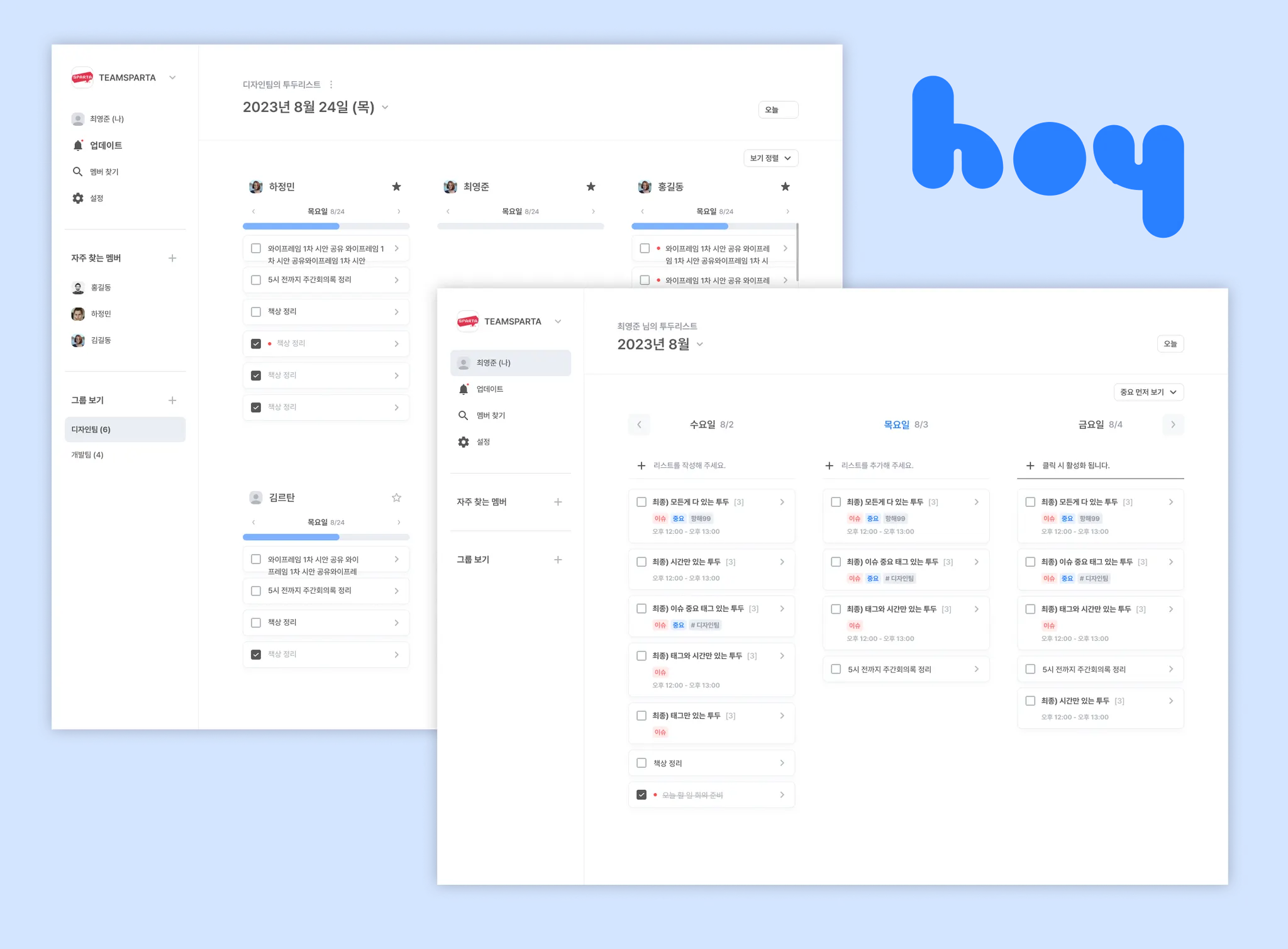 쉽고 간단하게 작성하고, 한눈에 팀 업무를 확인할 수 있는 팀 단위 업무 관리 서비스입니다.